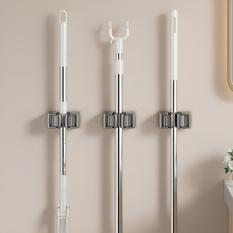 No-Drill Cleaning Tool Holder for Bathroom, Wall Hanging Storage Rack